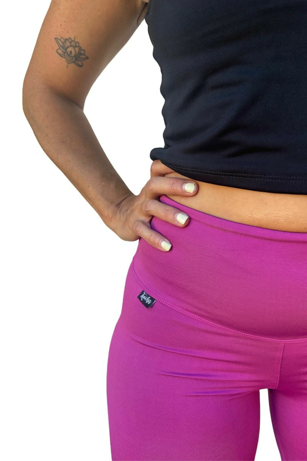 El tiro es alto, está confeccionada con cintura doble. No tiene elástico. Al agacharte o realizar cualquier movimiento, las calzas acompañan y no se caen.